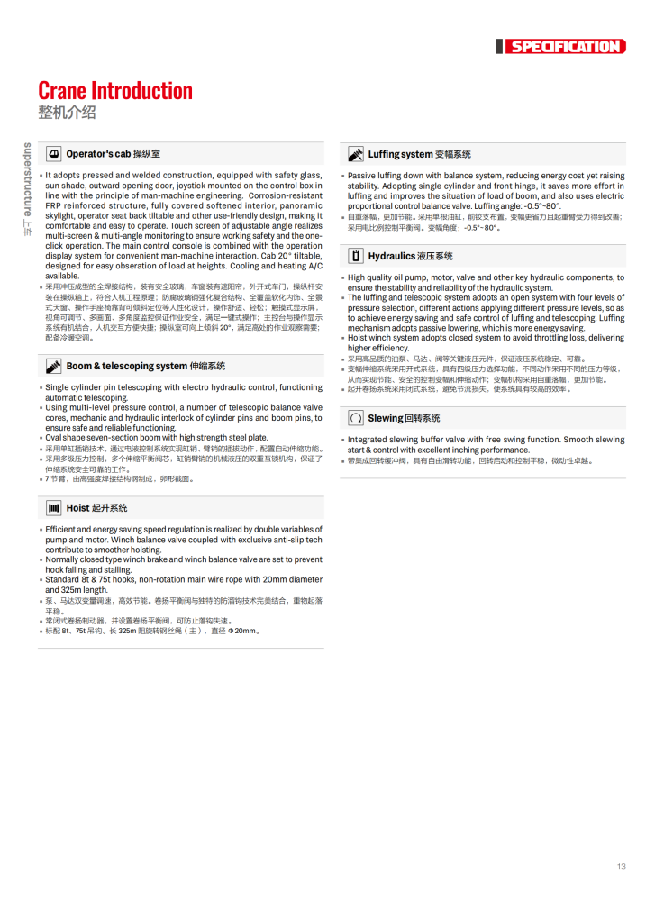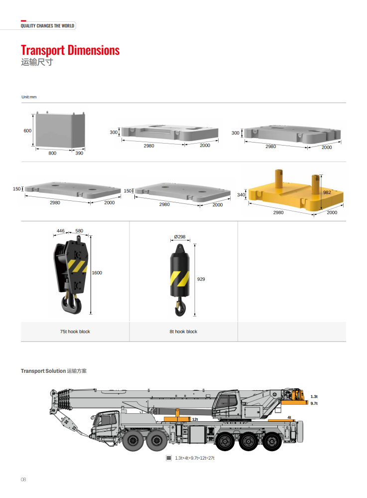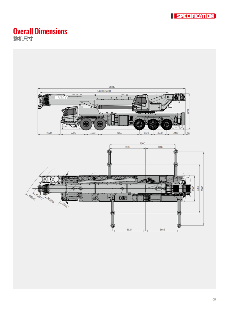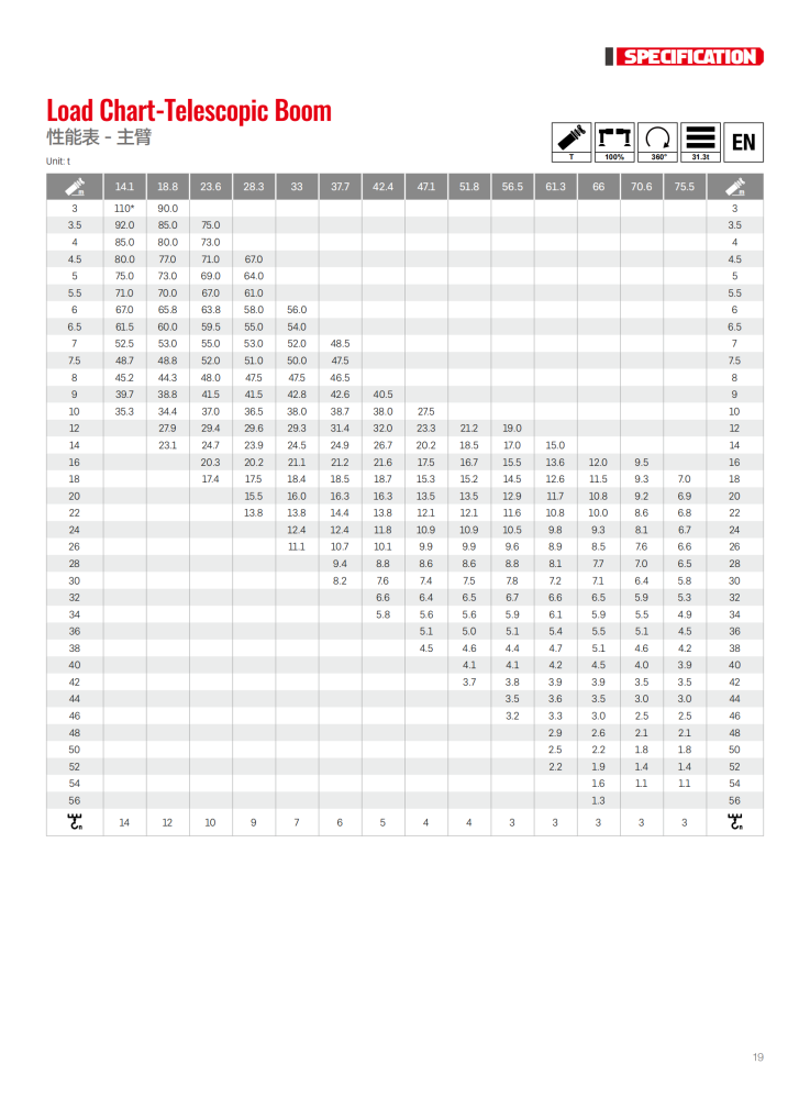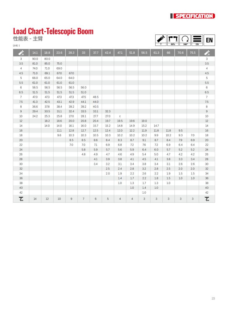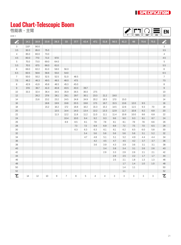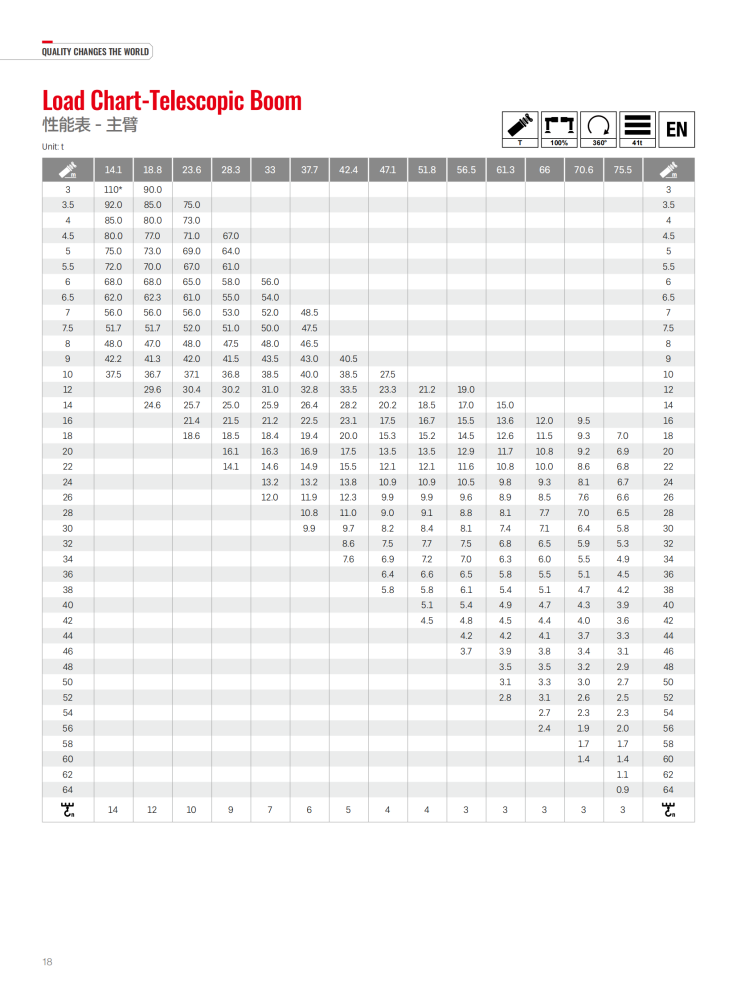 The STC1100T7-1 is a 110-ton truck crane with exceptional lifting capacity. Its maximum lifting capacity reaches 110 tons. Its seven-section main boom reaches a full extension of 70 meters. With the jib, it reaches a maximum lifting height of 102.5 meters, covering a wide range of operating areas. Its powerful power and stable and reliable transmission ensure excellent driving performance. Its advanced control system ensures precise and convenient operation.